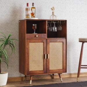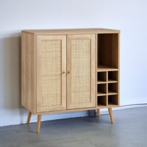 Natural Solid Teak Wood Rattan Bar Cabinet