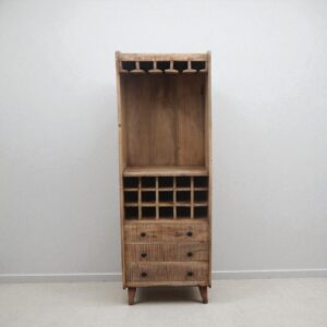 Solid Teak Wood Bar Cabinet with Wine Rack