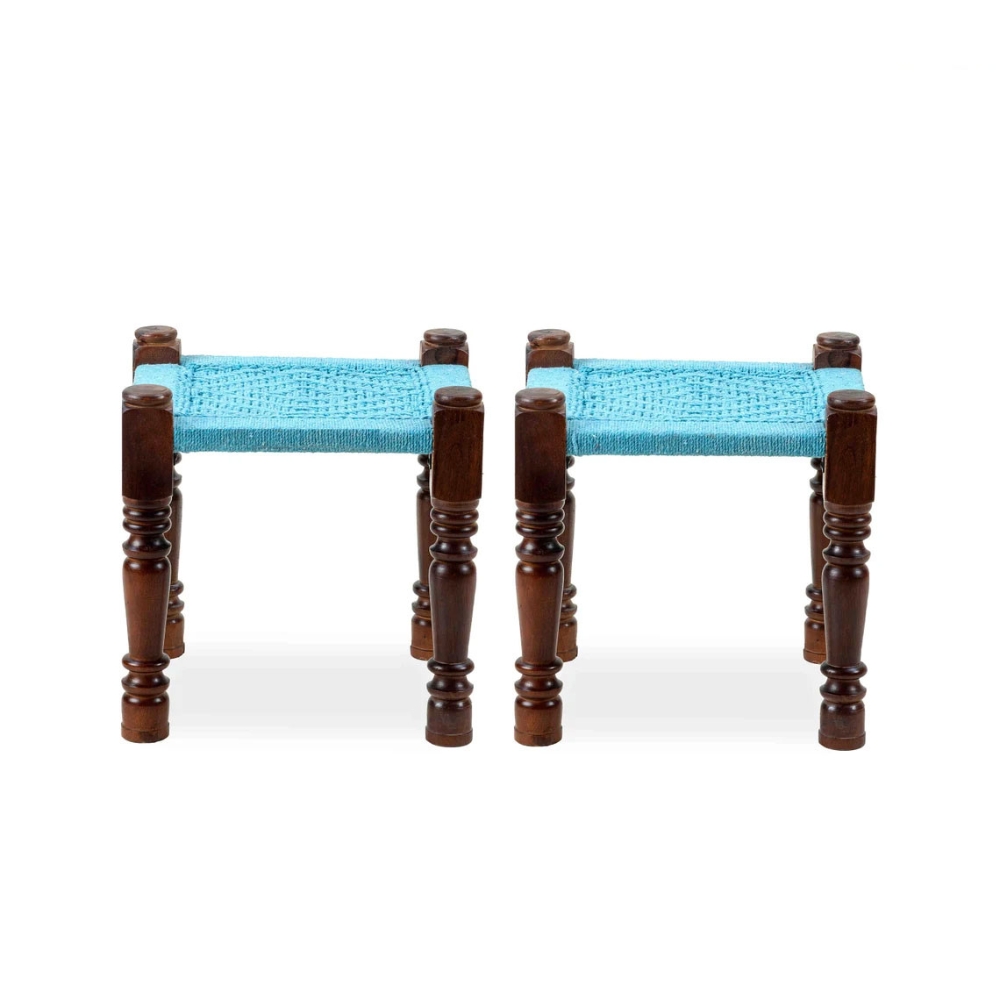 Home Stool Blue Wooden Rope Stool Set of Two Stools