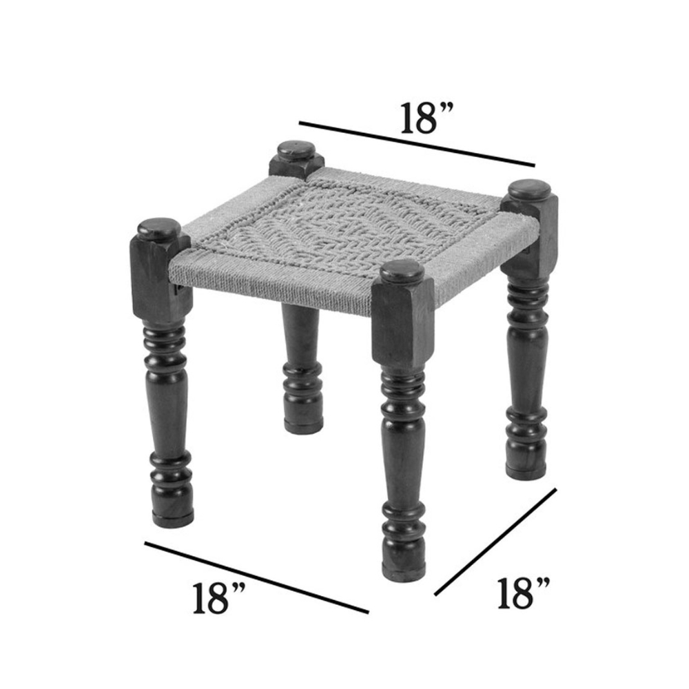 Rajasthani Wooden Jute and Cotton Rope Stool – Set of 3