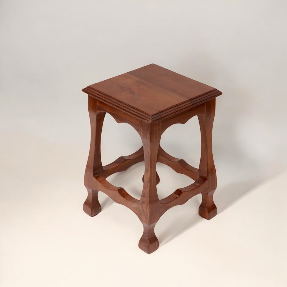 Classic Carved Teak Wood Stool for Home