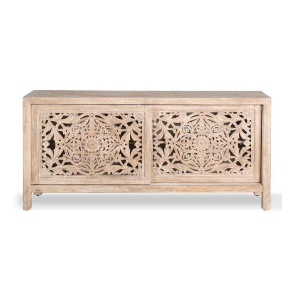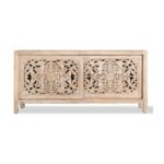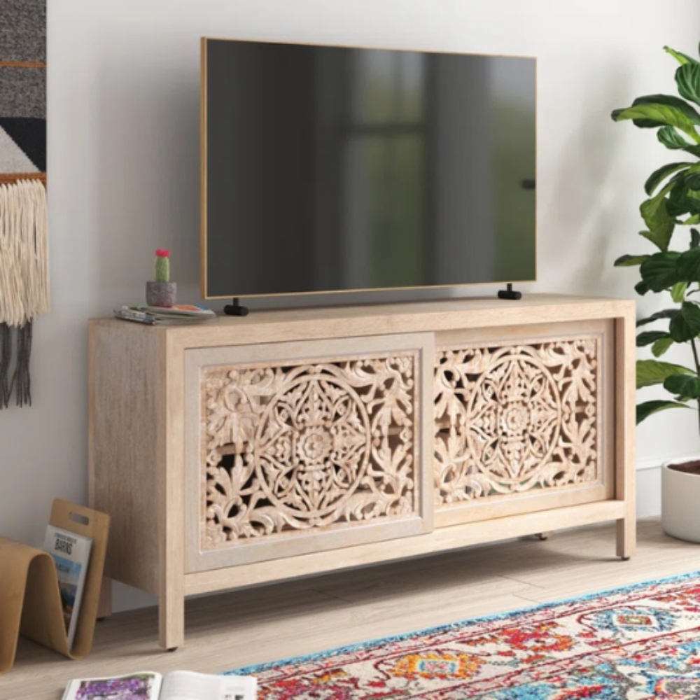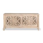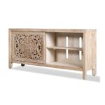 Hand Craved 68″ TV Cabinet In Natural Finish