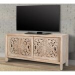 Home Bedroom Tv Unit Hand Craved 68″ TV Cabinet In Natural Finish