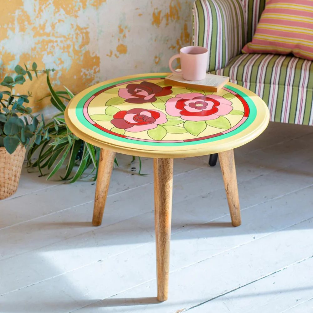 Hand Painted Mango Wood Round Coffee Table