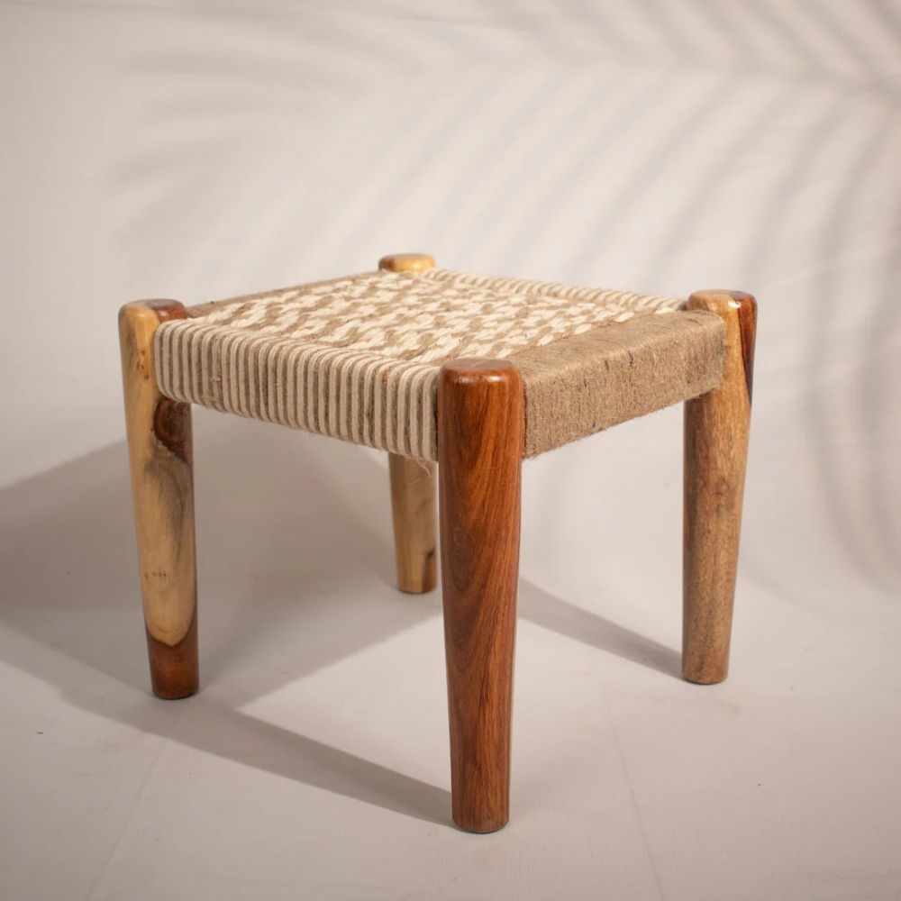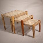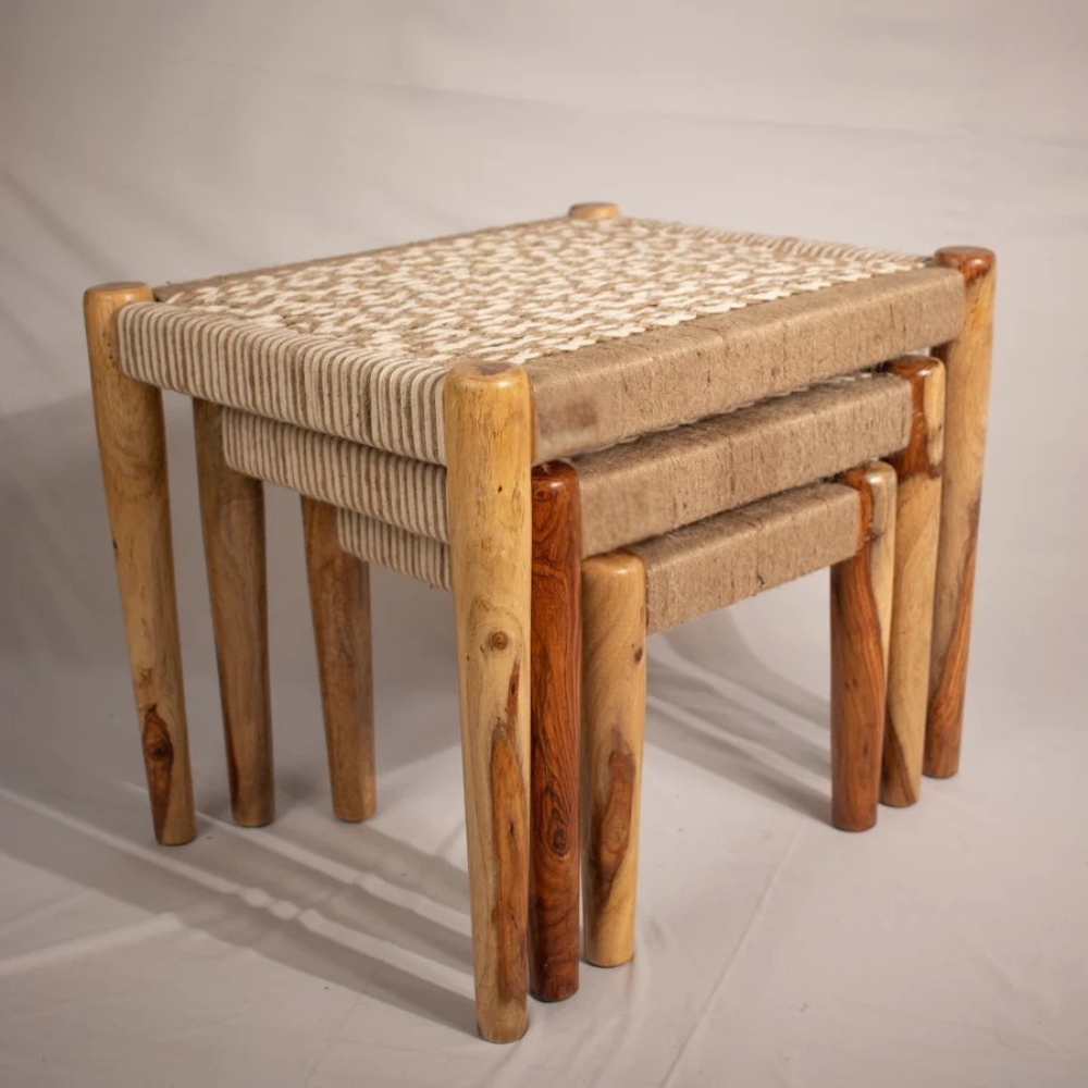 Rajasthani Wooden Jute and Cotton Rope Stool – Set of 3