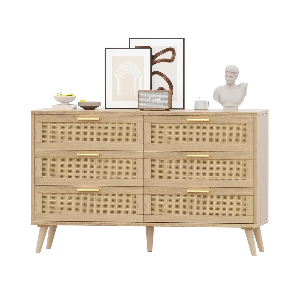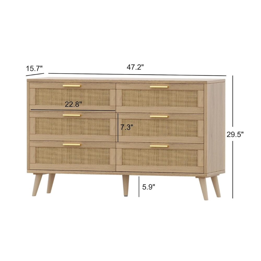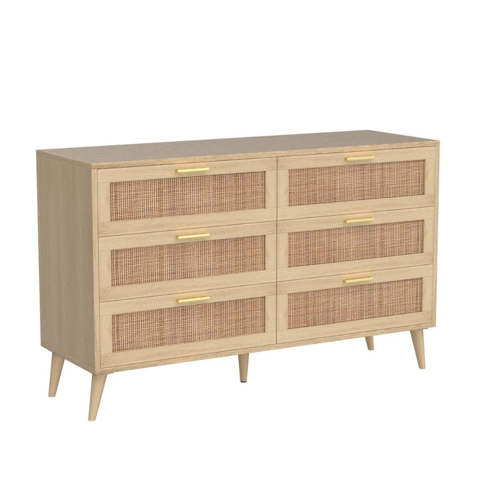 Rattan 6-Drawer Double Dresser for Bedroom