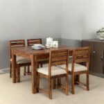 Sheesham Wood 4 Seater Dining Set In Rustic Teak Finish with Drawer