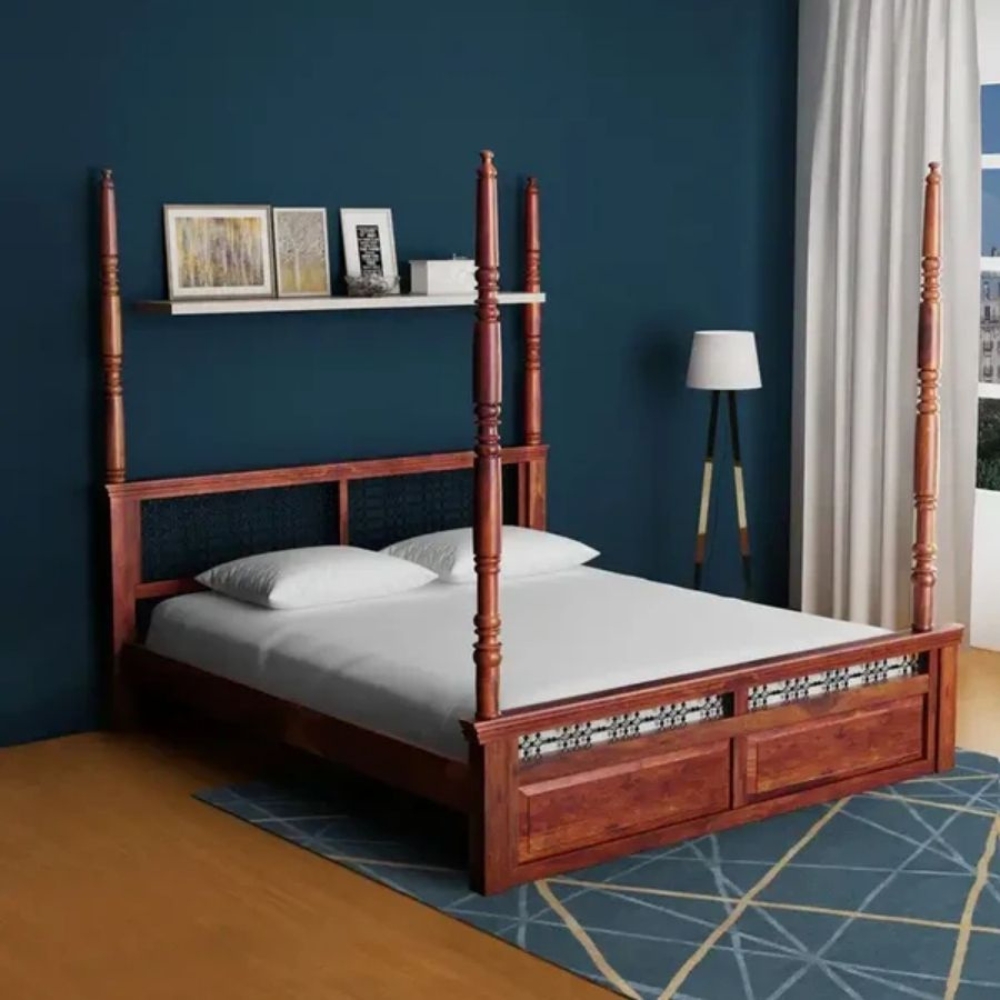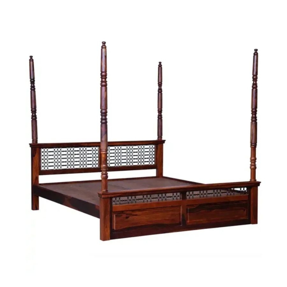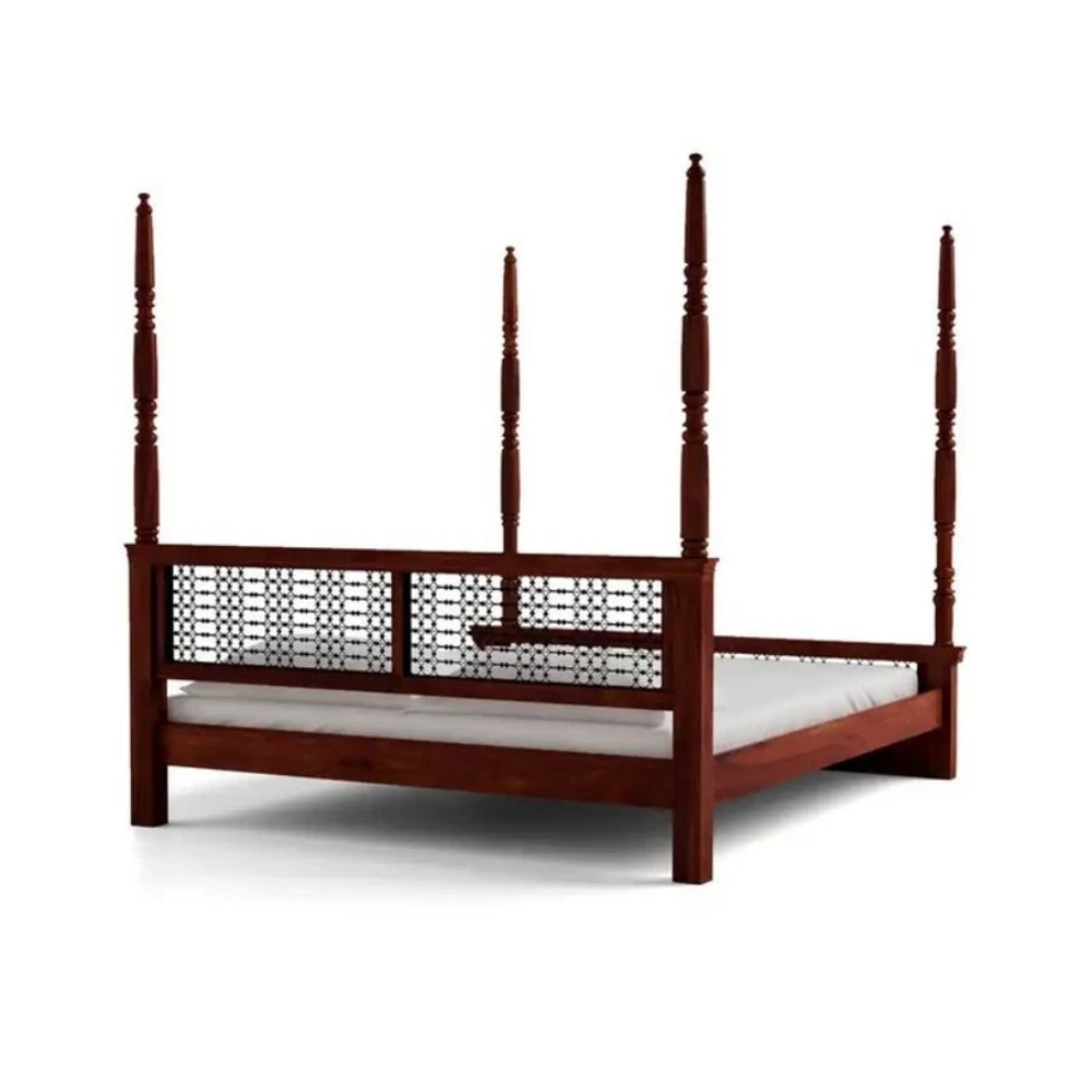 Sheesham Wood Queen Size Poster Bed for Bedroom