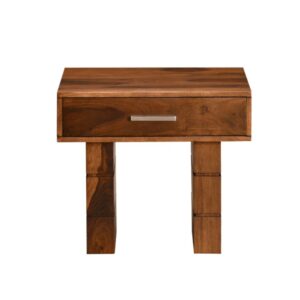 Solid Wood Hand Cut Side Table Drawer – Natural Finish