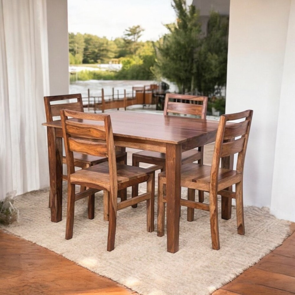 Sheesham Wood 4 Seater Dining Set in Teak Finish