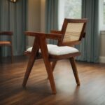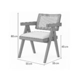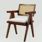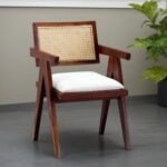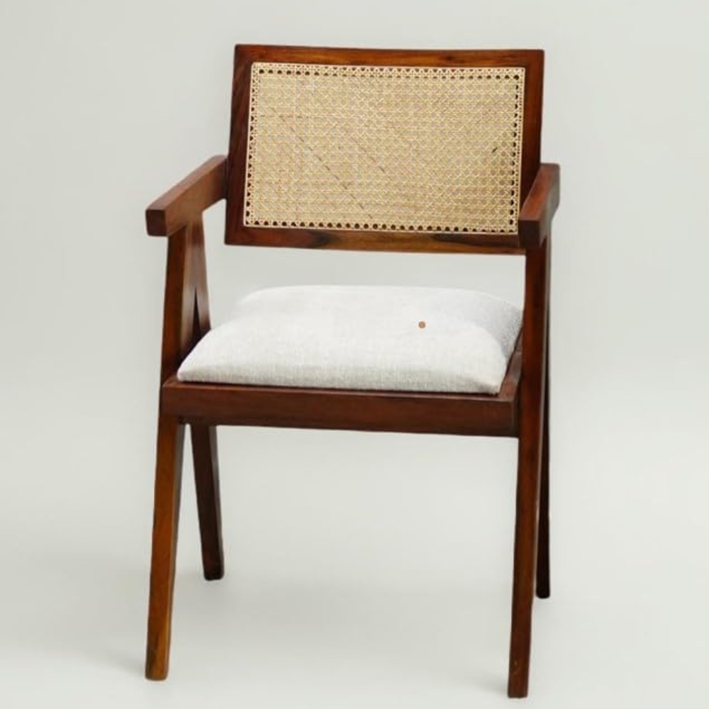 Solid Teak Wood Arm Chair with Cushion and Cane Back Support