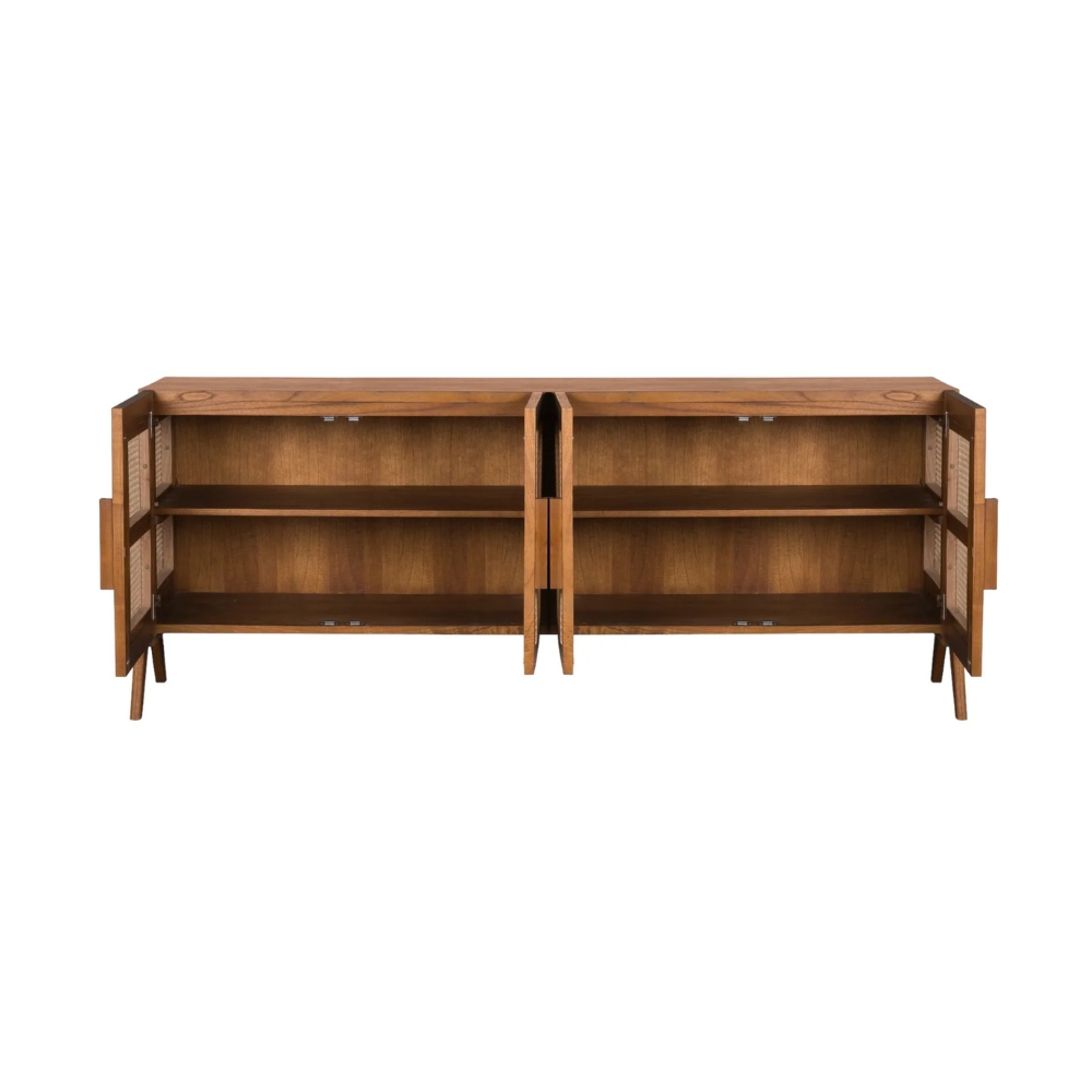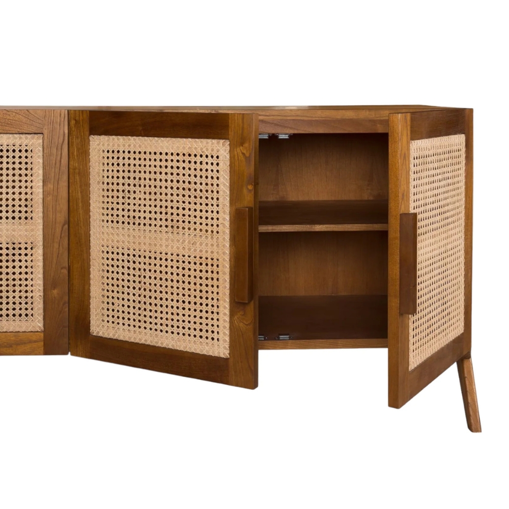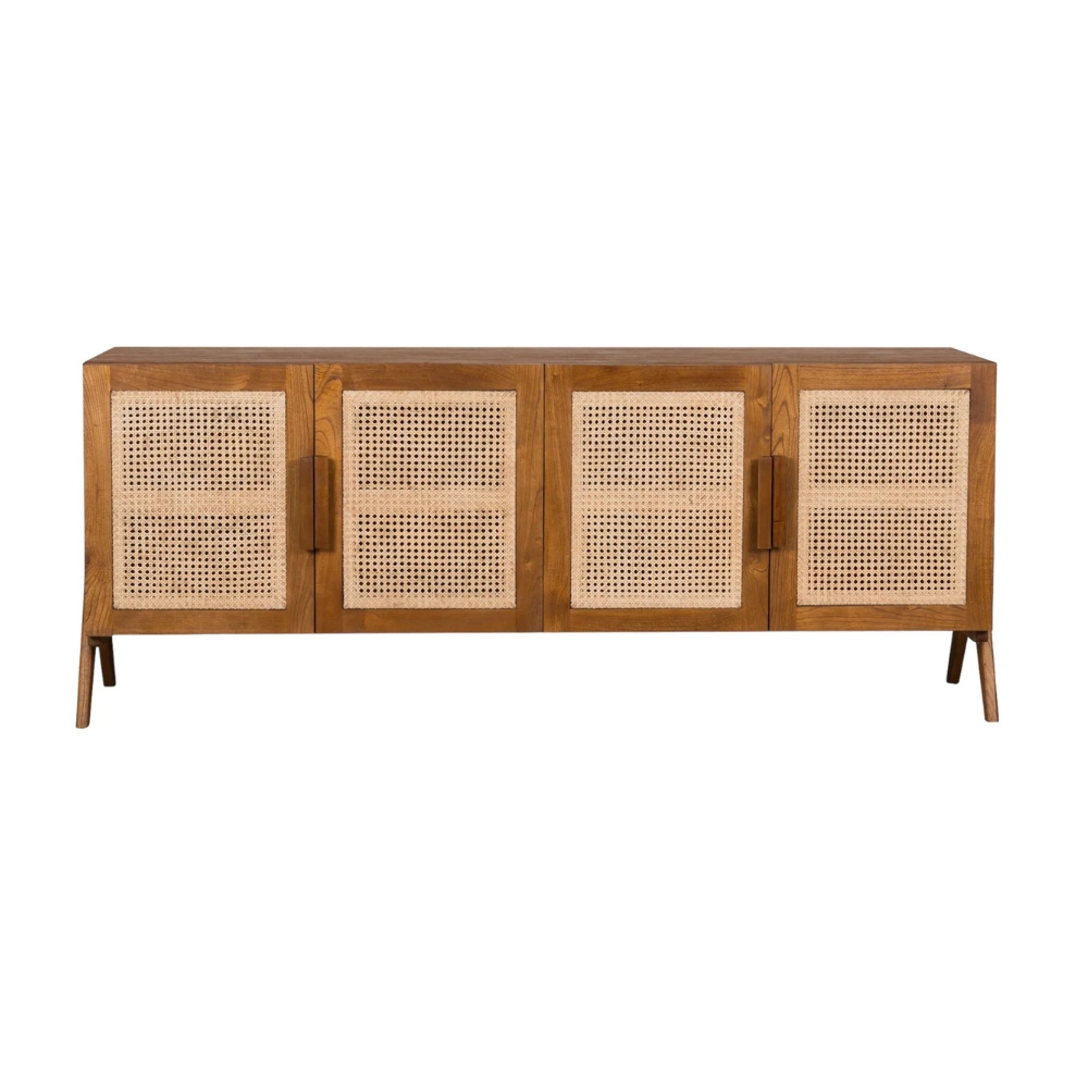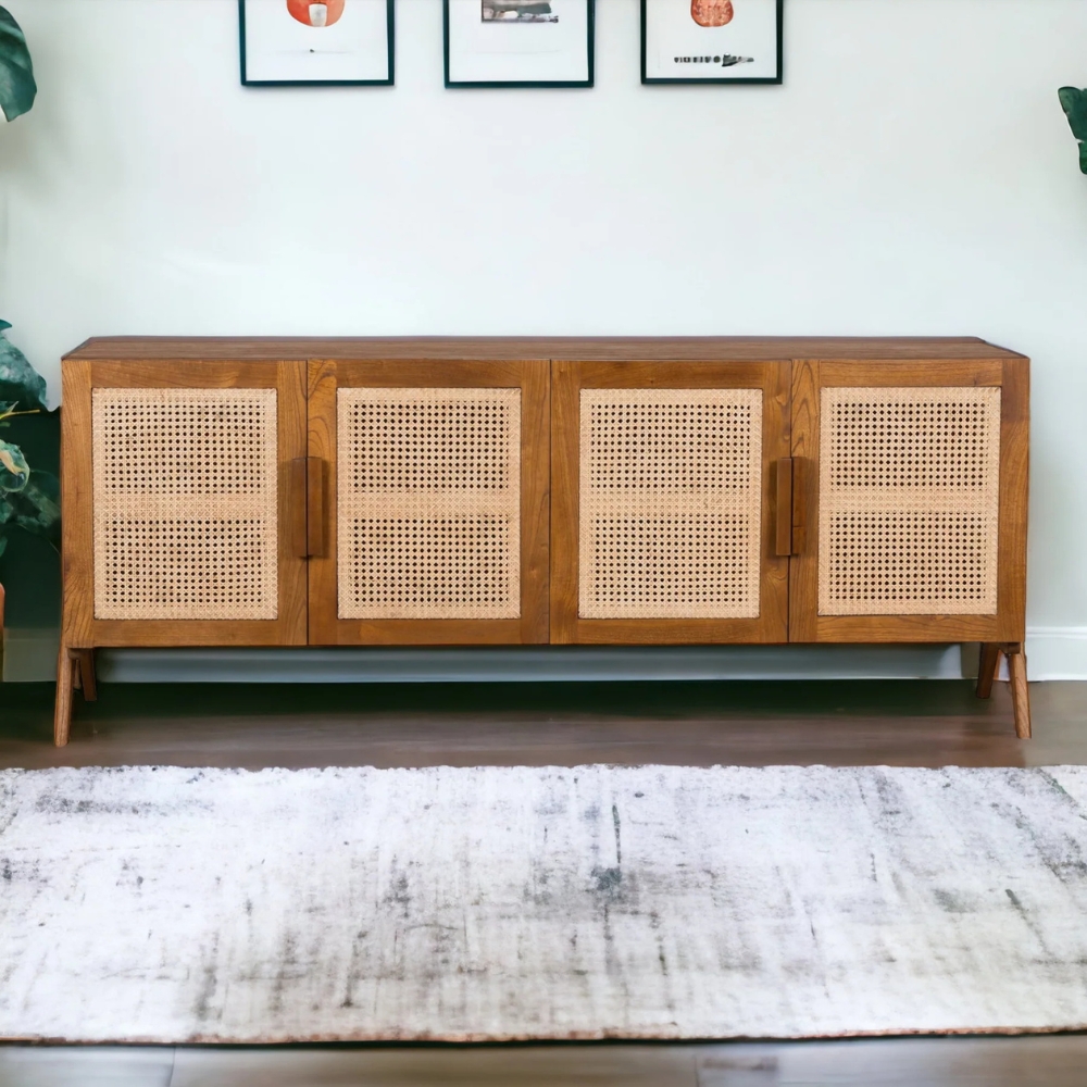 Home Bedroom Tv Unit Solid Teak Wood Rattan Sideboard