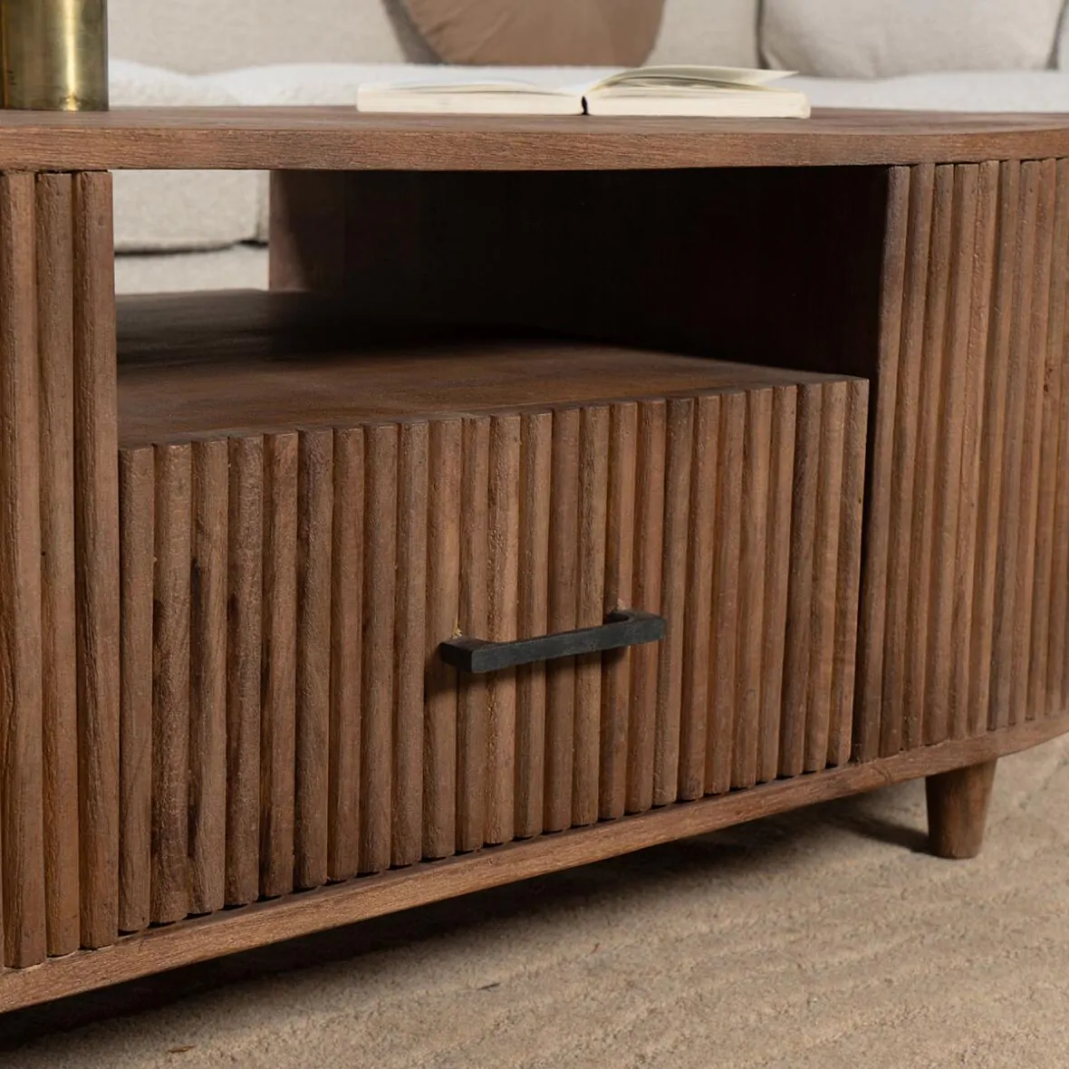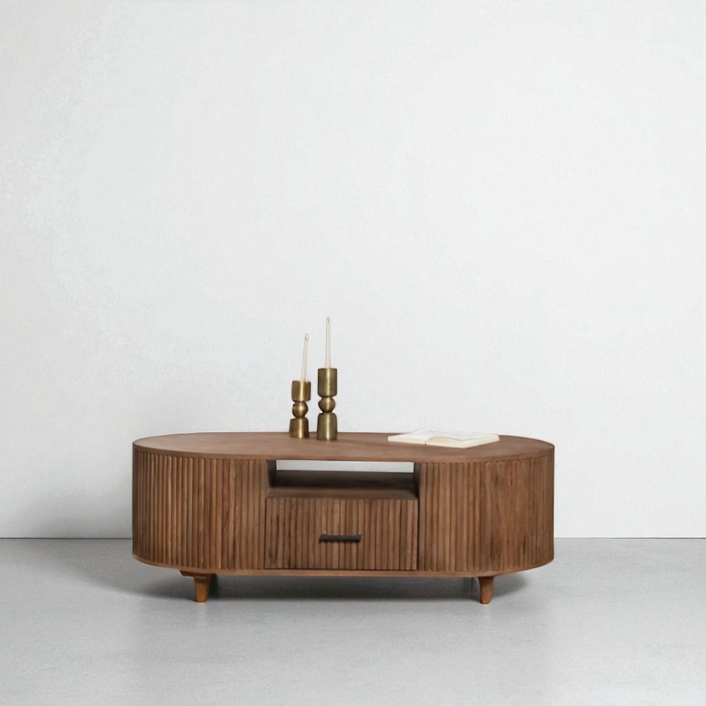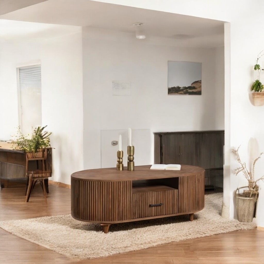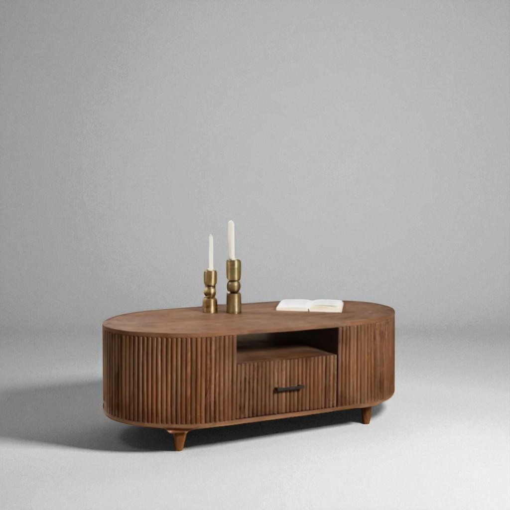 Solid Wood Oval Coffee Table For Home