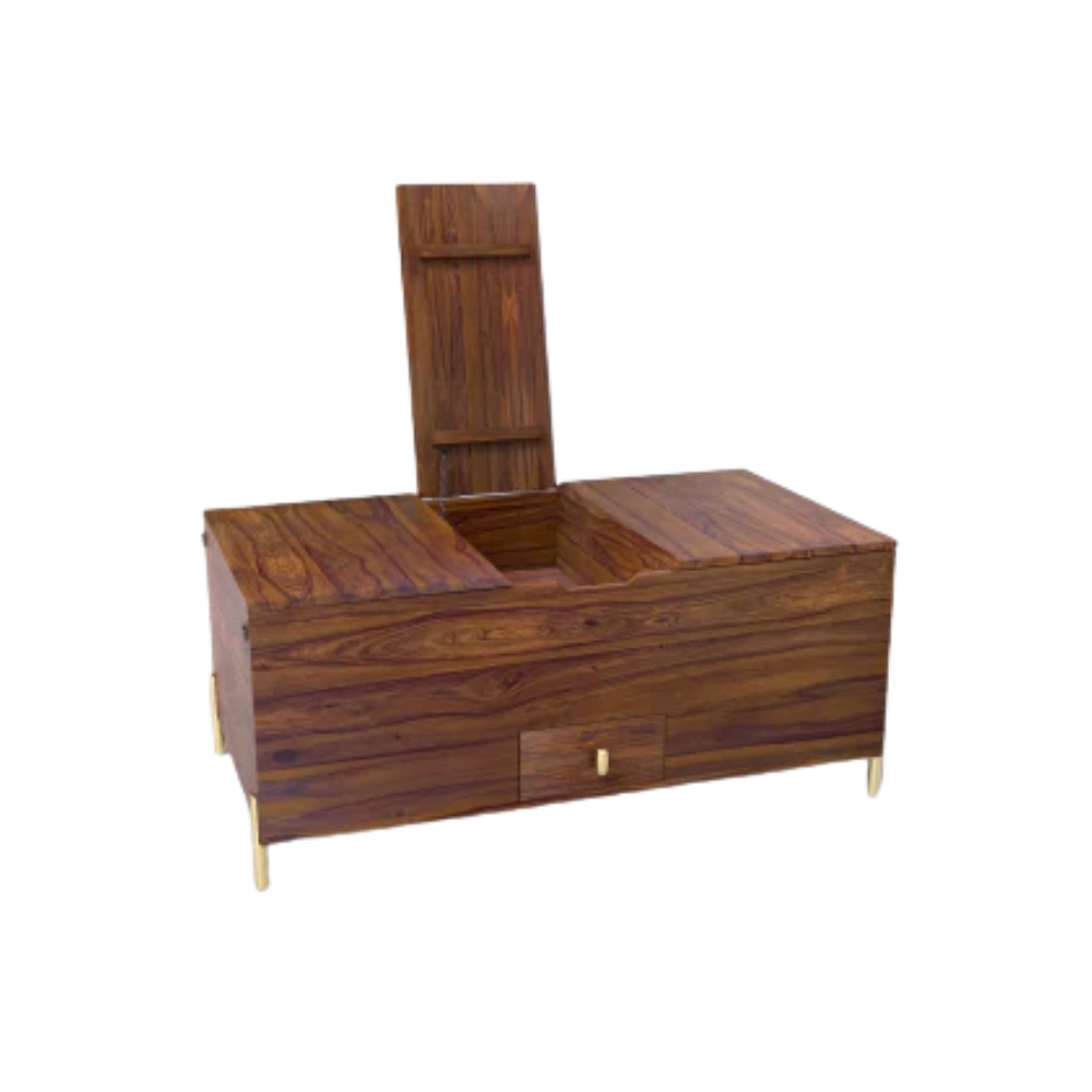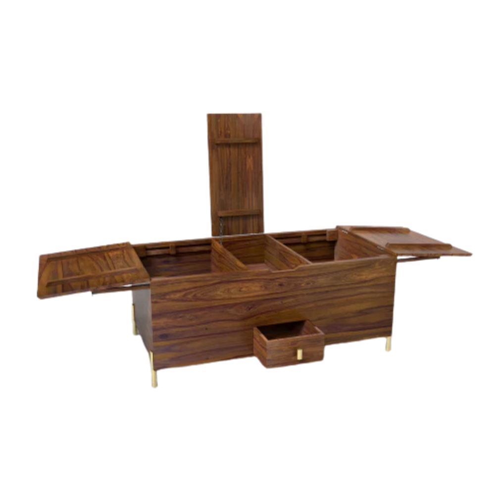 Teak Wooden Bar Cabinet with Coffee Table in Honey Finish