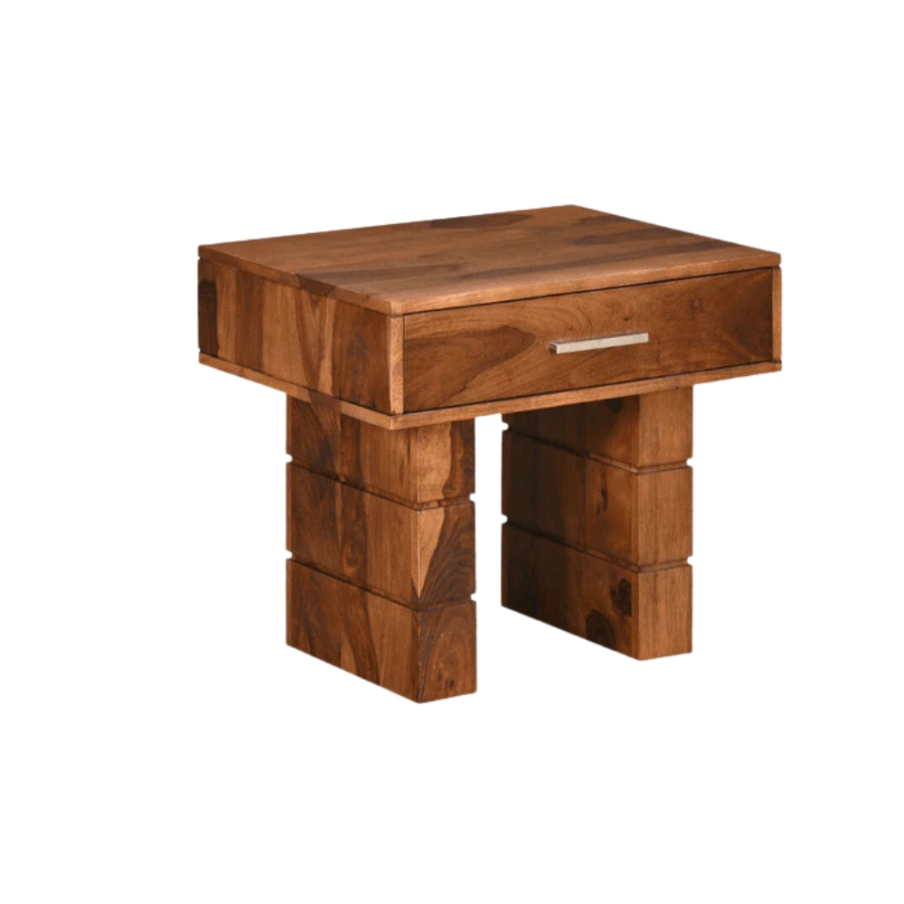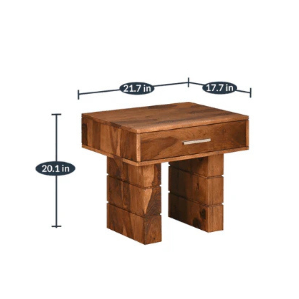 Honey Finish Modern Teak Wooden Bedside