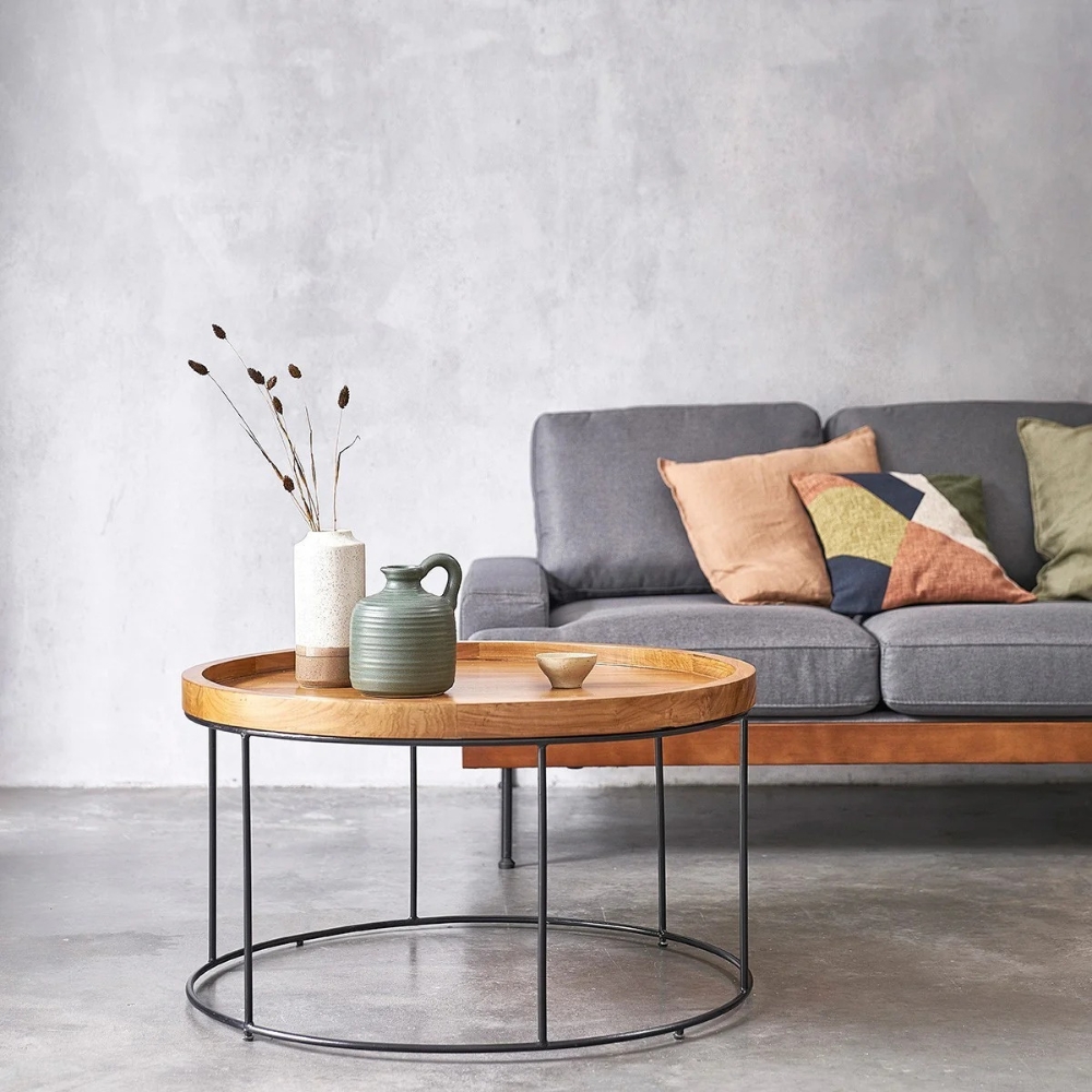 Round Wood Coffee Table with Natural Finish for Living Room
