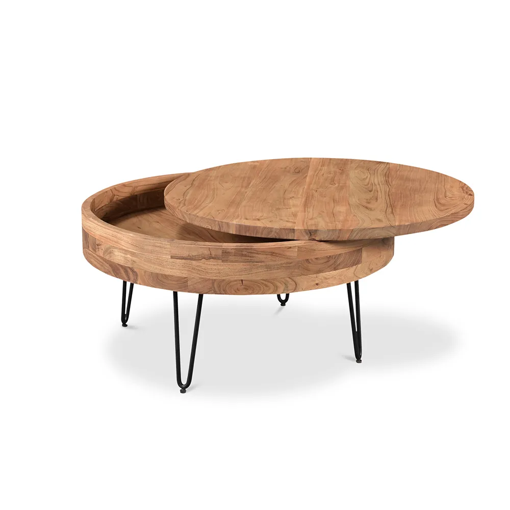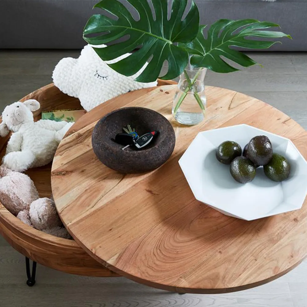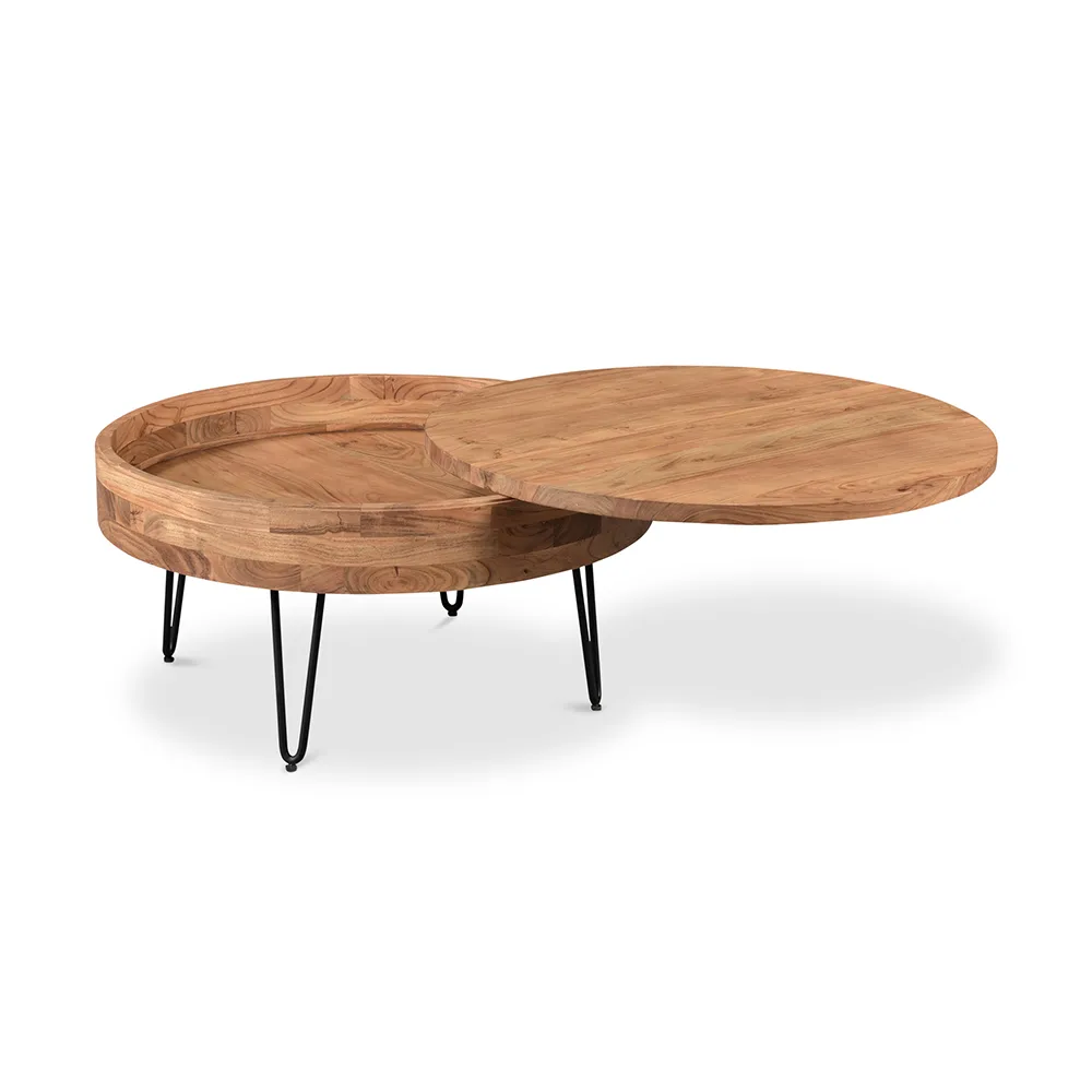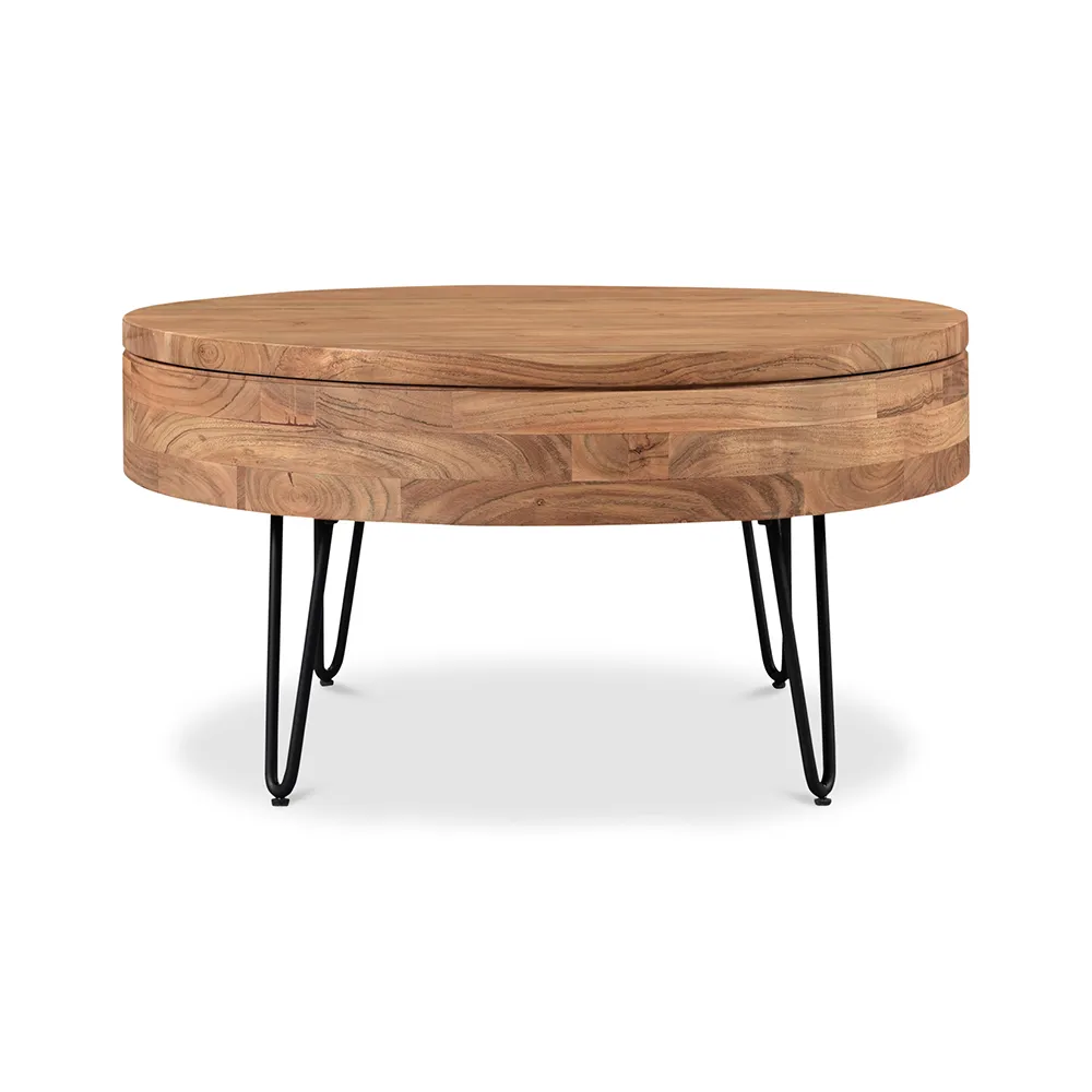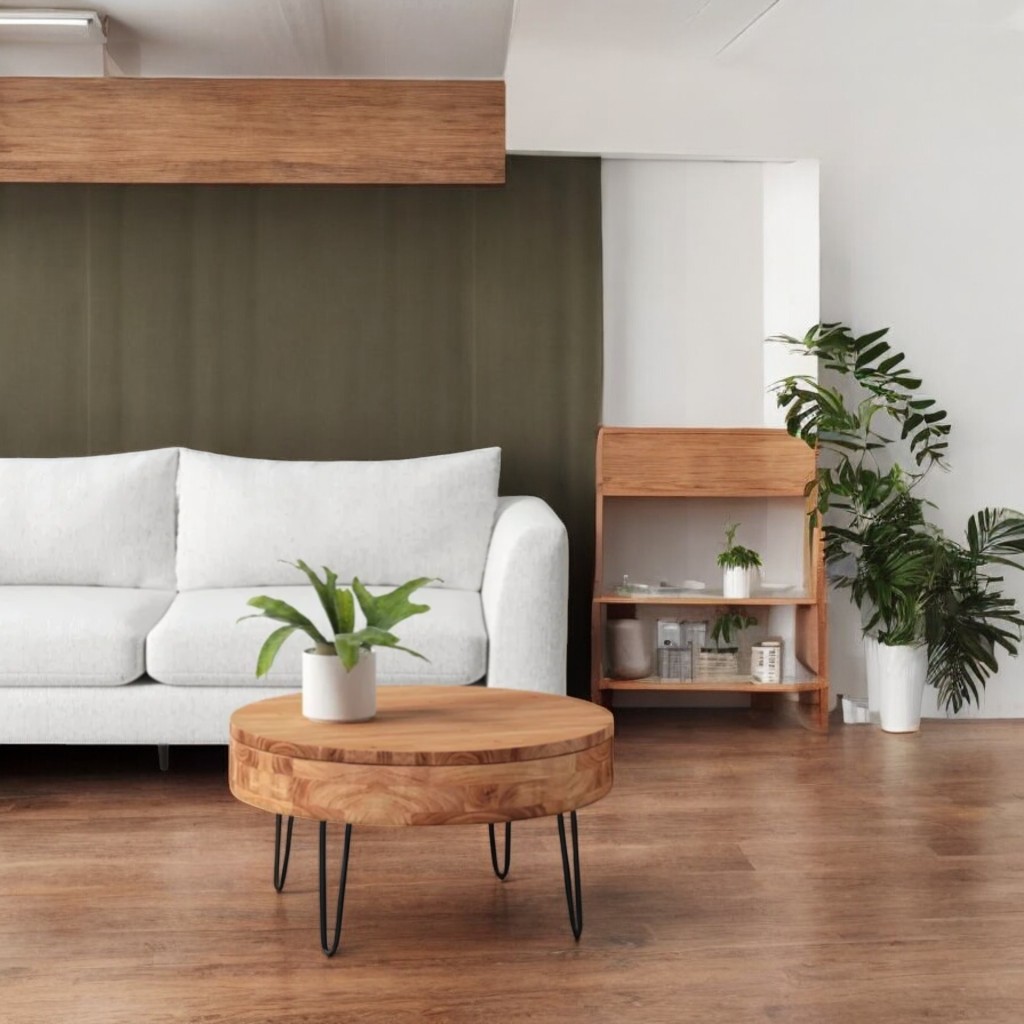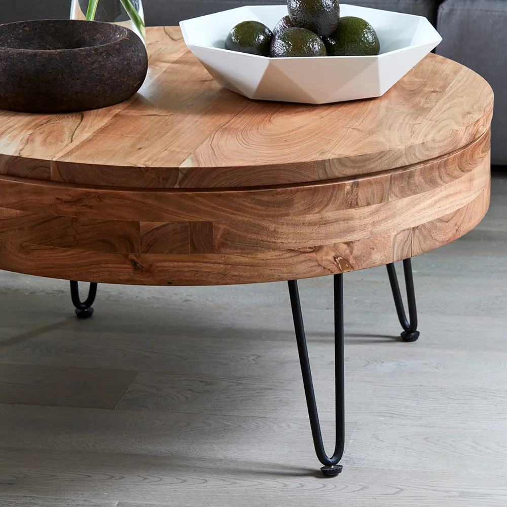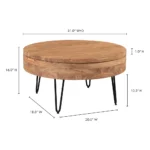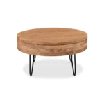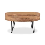 Round Wood Coffee Table with Natural Finish for Living Room