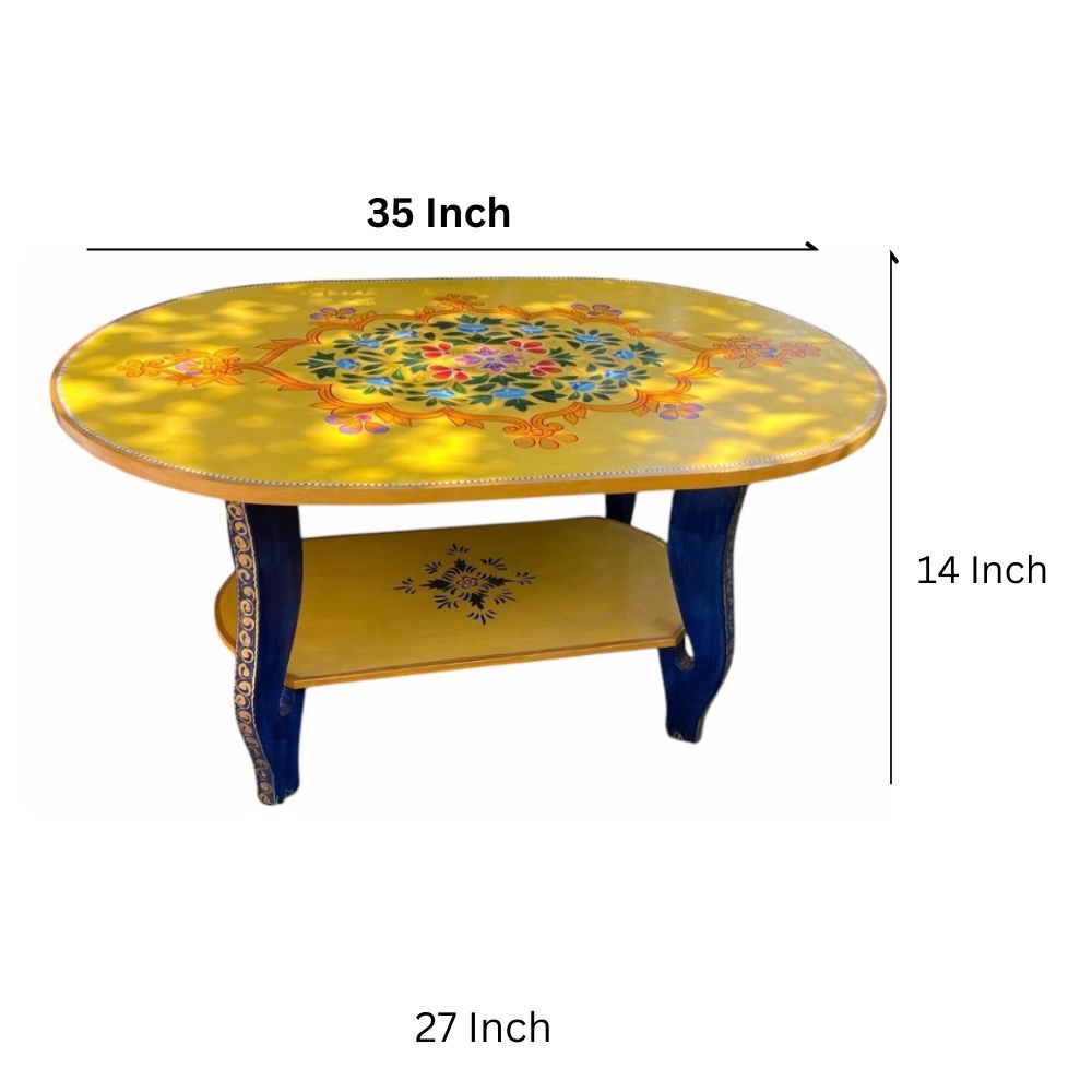Yellow Wooden Hand Painted Coffee Table For Living Room